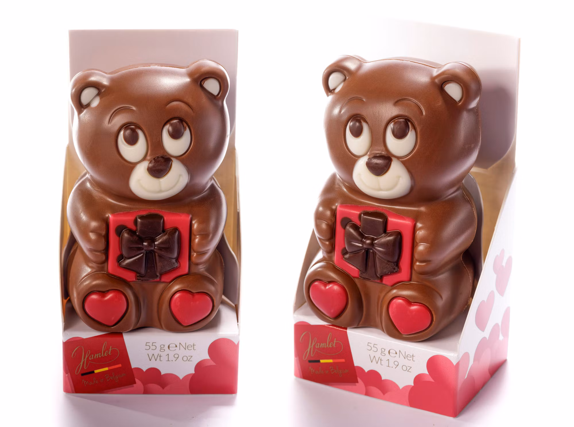 En gullig chokladfigur med motiv av en björn i mjölkchoklad. Ej egen tillverkning.