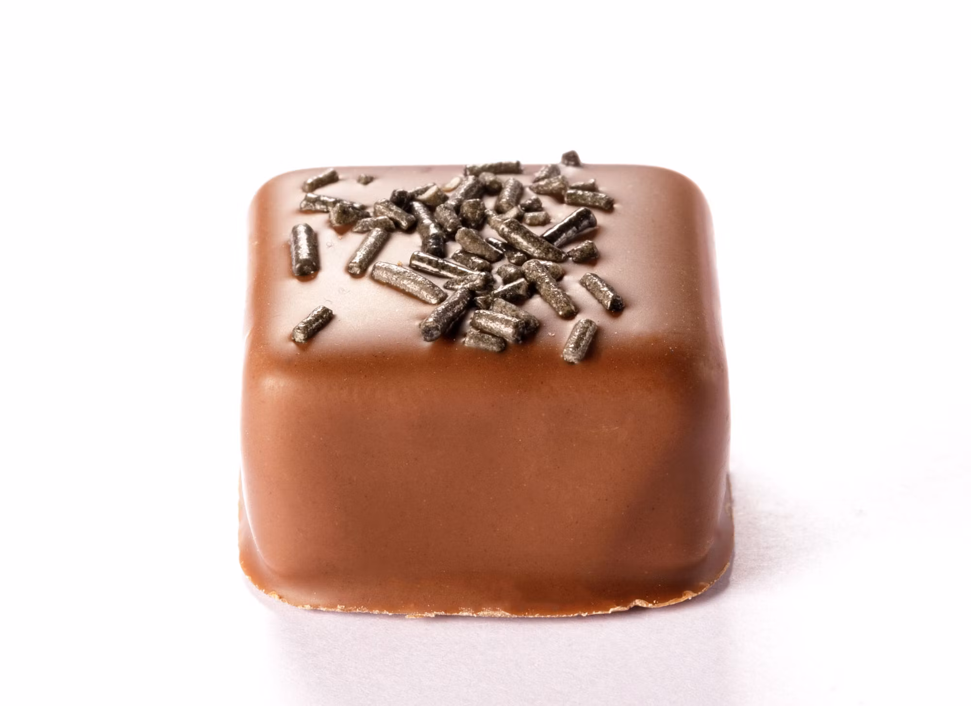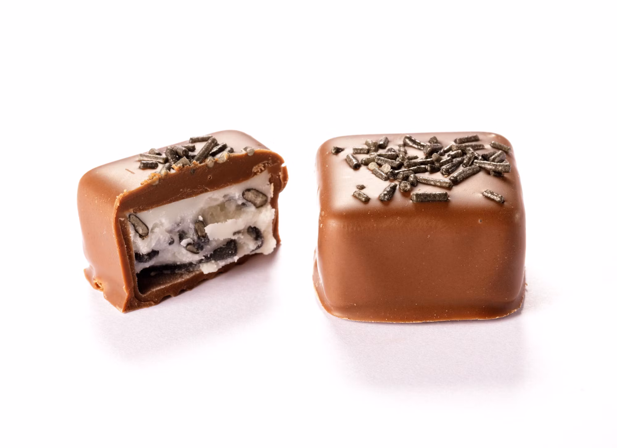 Vit tryffel smaksatt med saltlakritsflakes doppad i ljus 36% choklad.