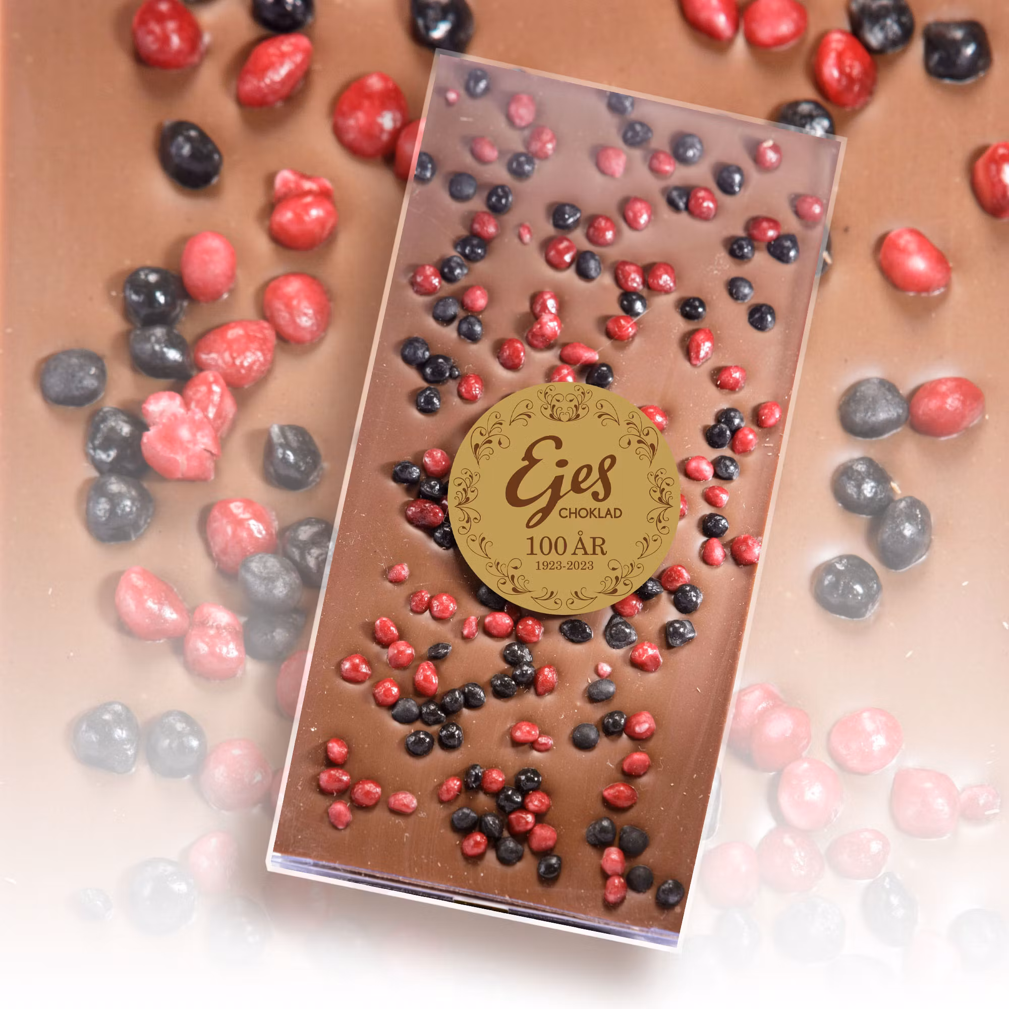 InnehållsförteckningLjus choklad 36%, kakaomassa, kakaoSMÖR, socker, naturlig vanilj, glykossirap, vegetabilisk olja, invertsockersirap, salmiak, lakritsextrakt, citronsyra, fläderbärskoncentrat, SOJAlecitin, livsmedelsfärg.